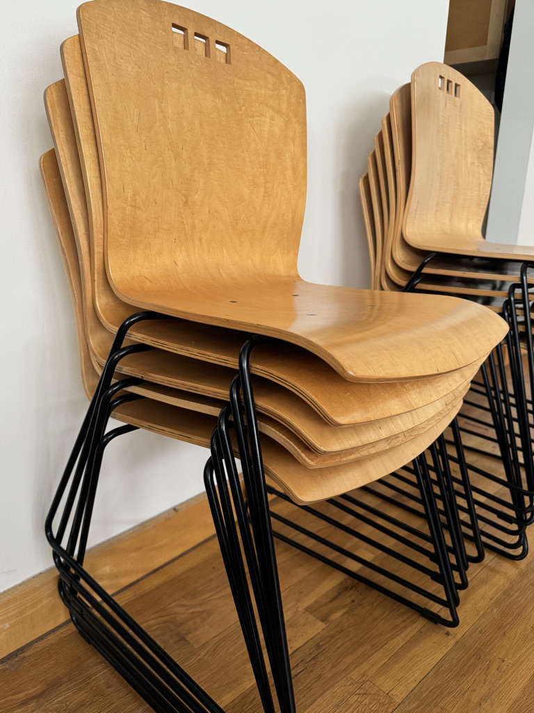 on the top/back of the chair body to allow for easy movement and easy stacking.